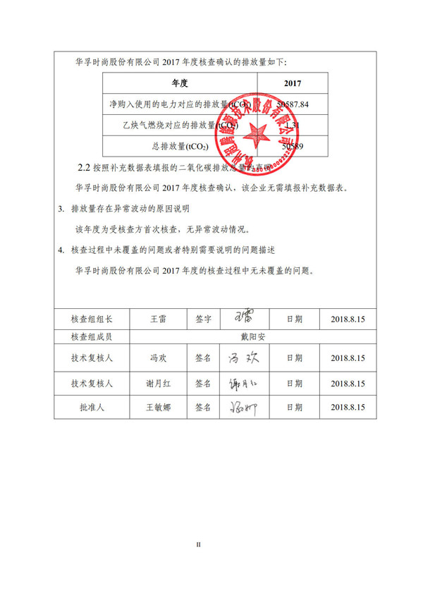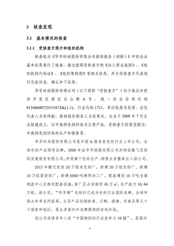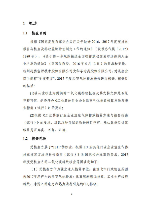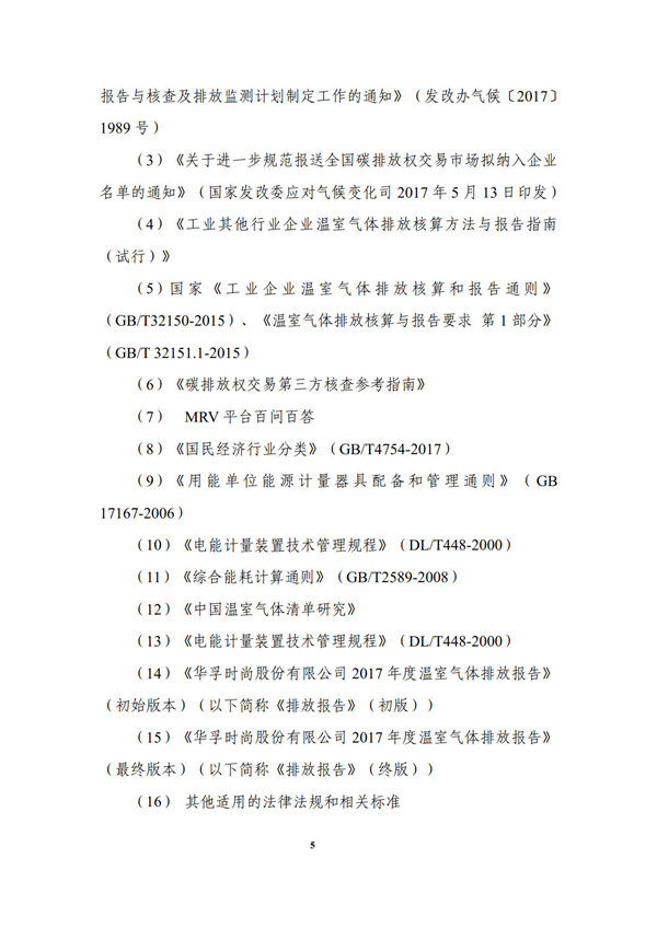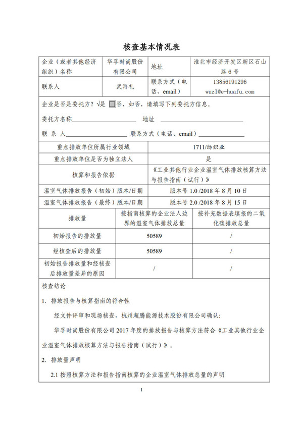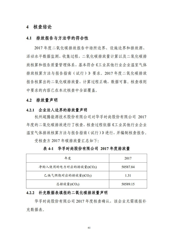 华孚时尚股份有限公司2017年度温室气体排放核查报告公示