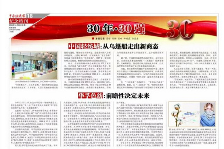 华孚色纺成立20多年以来,因在色纺纱领域的前瞻性布局和谋划,入围“中国纺织服装30年·3...