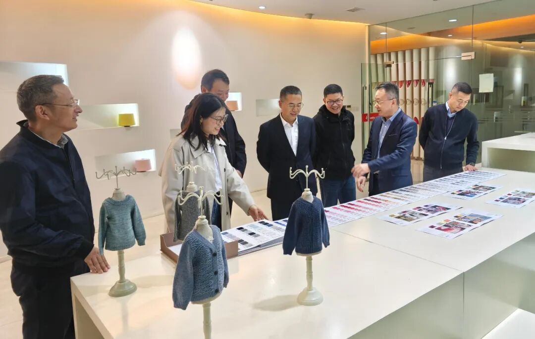 在研发中心,张总介绍华孚在被美国制裁后,积极转型升级,深耕国内市场,调整产品结构,大力开展产品创新,建立色纺纱、染色纱、坯纱“三纱合一”的品类矩阵。2025年,华孚纱线主业市场回暖,订单稳步回升。杨会长对华孚在困难条件下取得的成绩表示肯定和赞赏。
